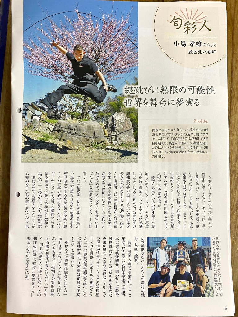 そして、プロのダブルダッチ競技者になった彼ですが、実は家業でもある農家としても頑張っていて、お米づくりや野菜、柿や梨などの果樹の栽培から収穫までを手掛けています。
