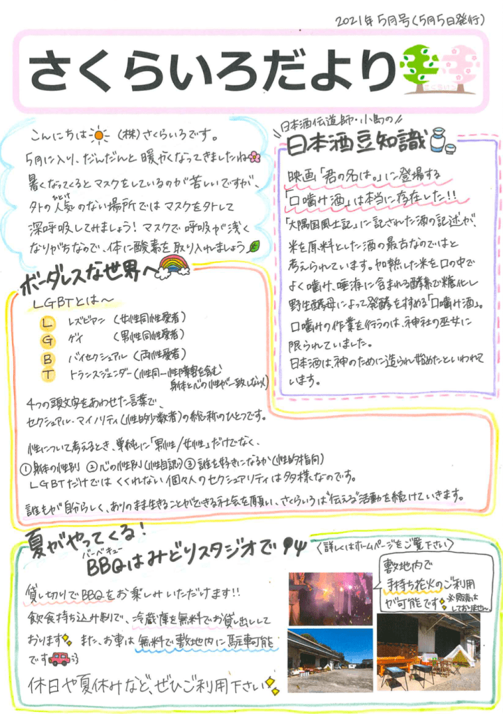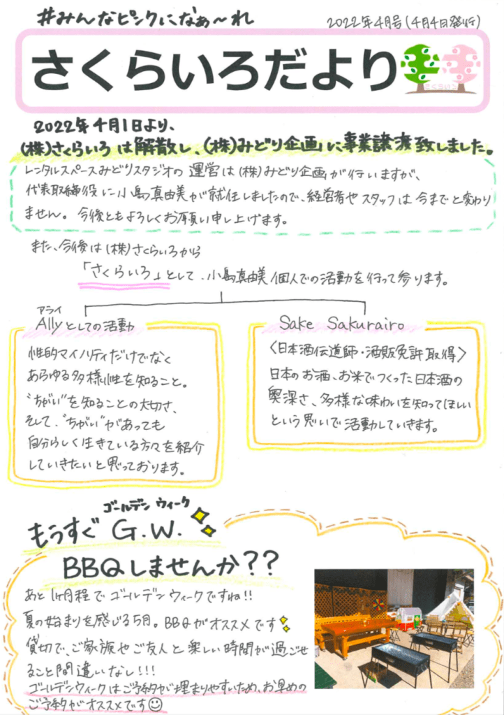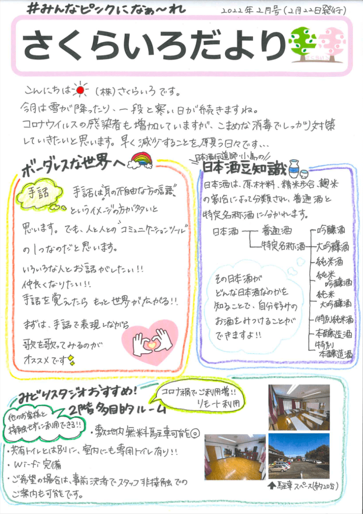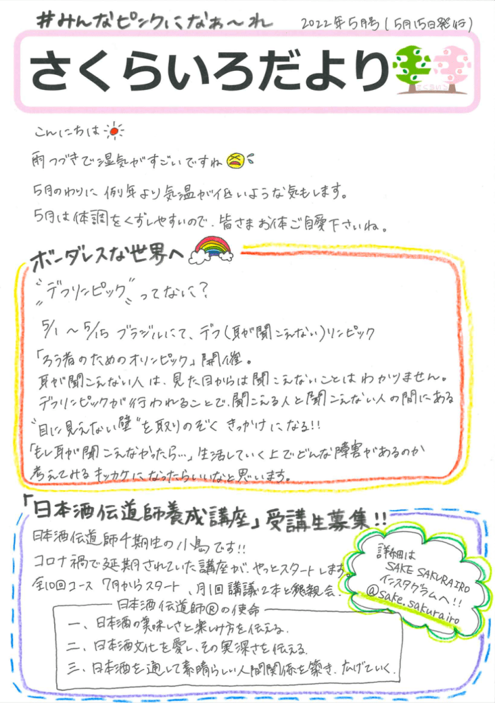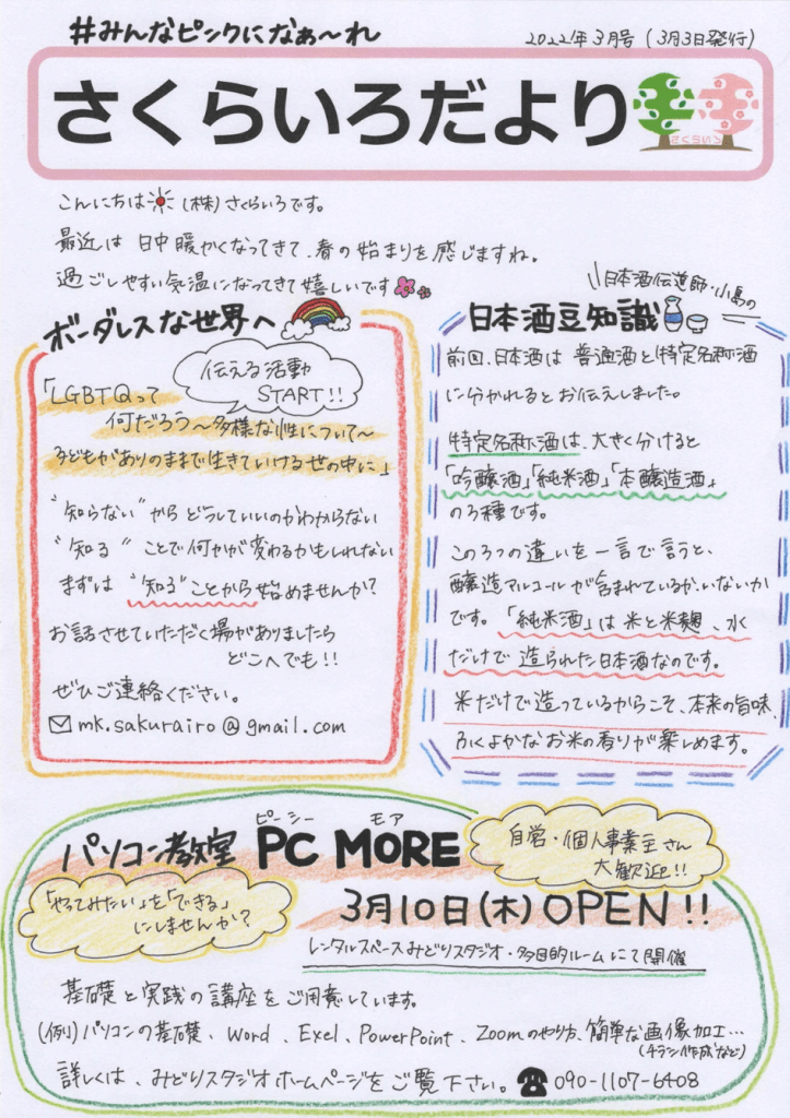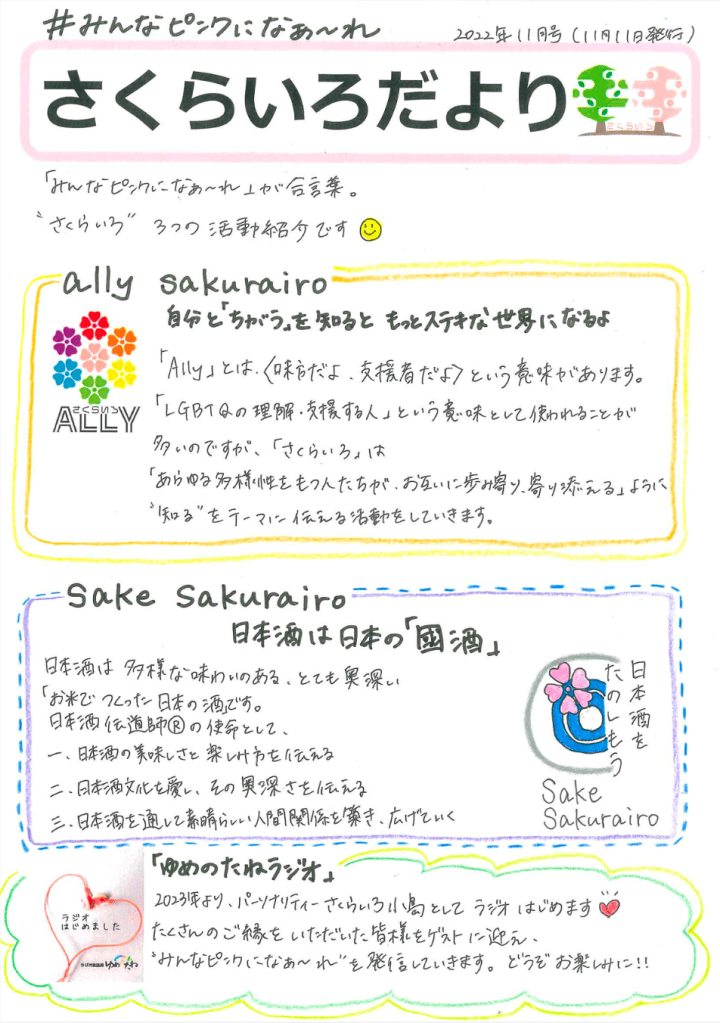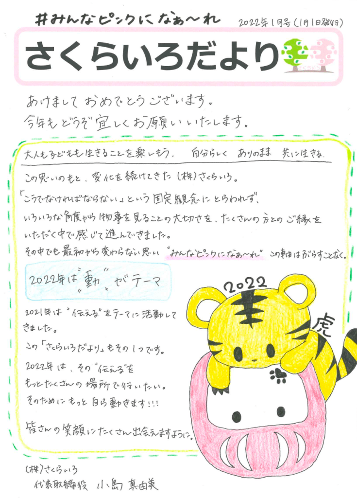 さくらいろ小島は、2021年4月から2022年の11月まで20回に渡って、『さくらいろだより」を発行してきました。