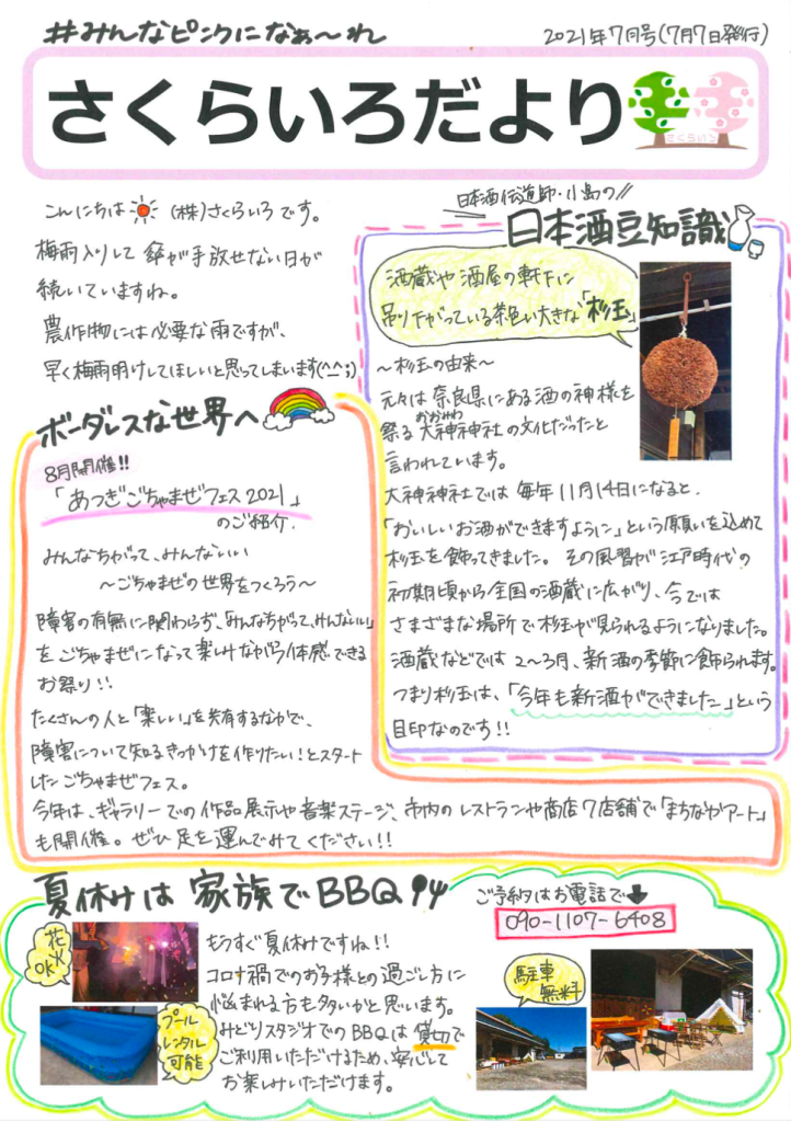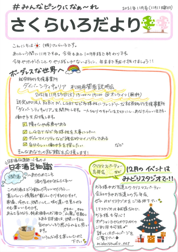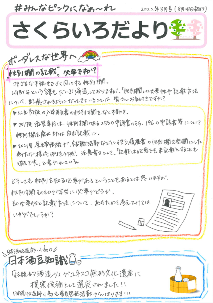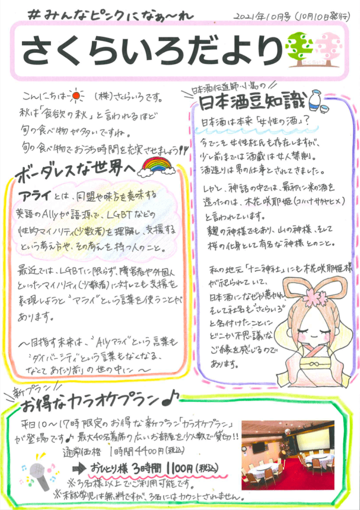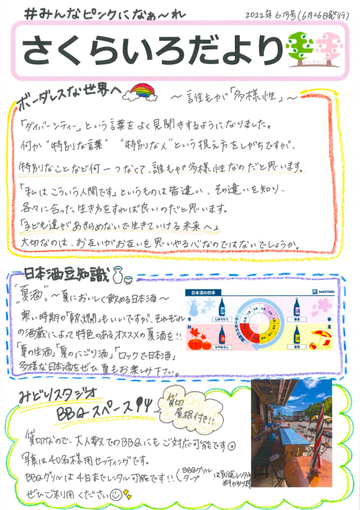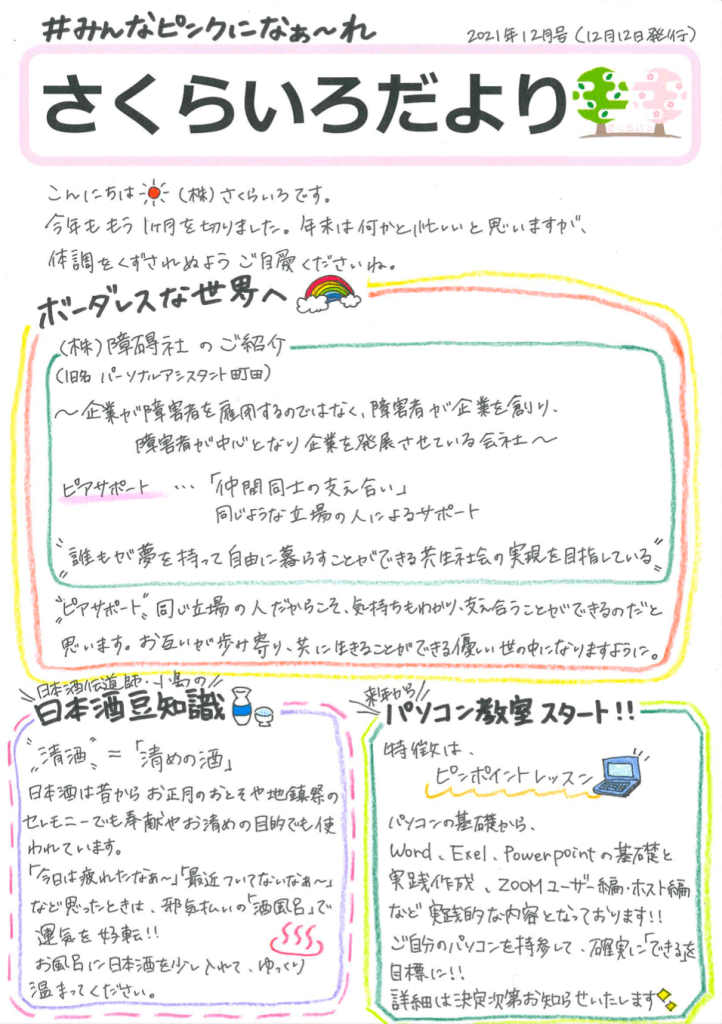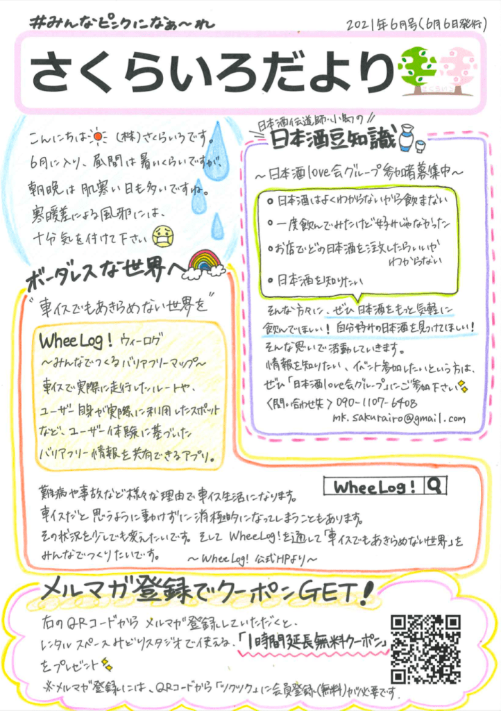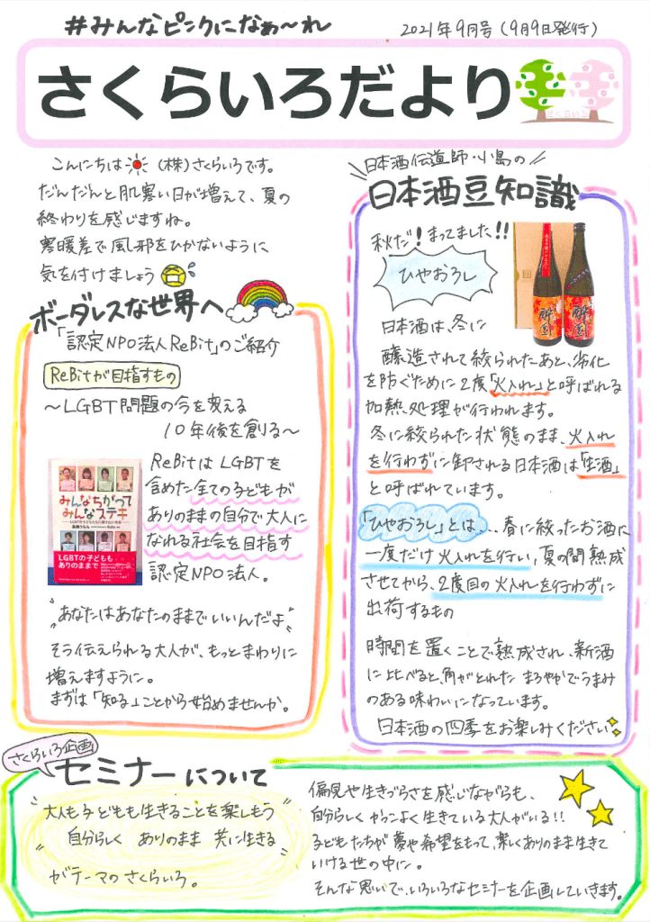 さくらいろ小島は、2021年4月から2022年の11月まで20回に渡って、『さくらいろだより」を発行してきました。