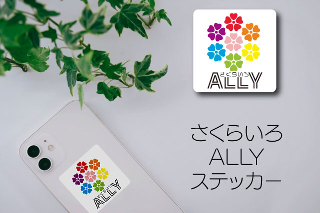 『味方』や『仲間』を意味する『ally(アライ)』 ひとりひとり違う”これが私”。 “違う”を知り歩み寄り、 寄り添うことができたらもっと優しい社会になると思います。 “allyの輪”が広がりますように、このシールを身の回りのものに貼って拡散してもらえたら嬉しいです。